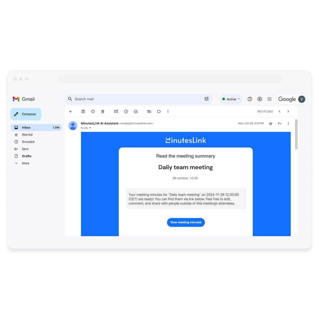 You don’t just get the raw recording, MinutesLink delivers AI-powered transcriptions and smart insights that help you understand key points, decisions, and action items.